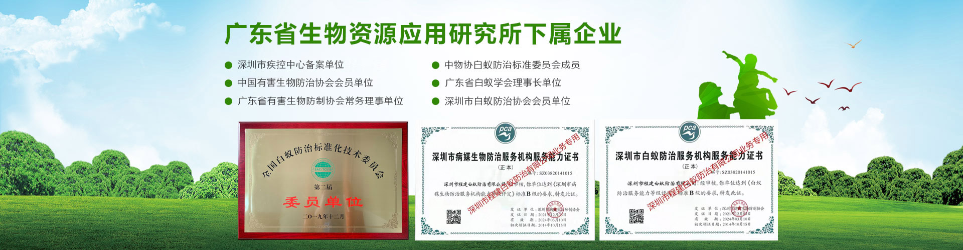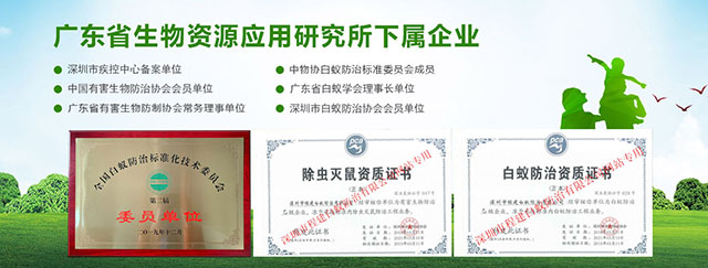 專注于徹底根治、防治結合,售后跟蹤服務,專業服務工程師有豐富實戰(zhàn)經驗超過十年。持有專業資格證書認證:“有害生物防制服務機構服務能力證書B級”、“白蟻防治服務機構服務能力證書B級”所有員工持有“深圳市白蟻防治上崗證”和“深圳市除蟲滅鼠上崗證”,雙資格證上崗服務。榮獲過:“優(yōu)質服務示范單位”、“白蟻防治服務信譽AAA級單位”、“深圳市白蟻防治先進單位”、“深圳市十大白蟻防治品牌”、“深圳市殺蟲公司”、“深圳市消殺公司”先進單位等榮譽。